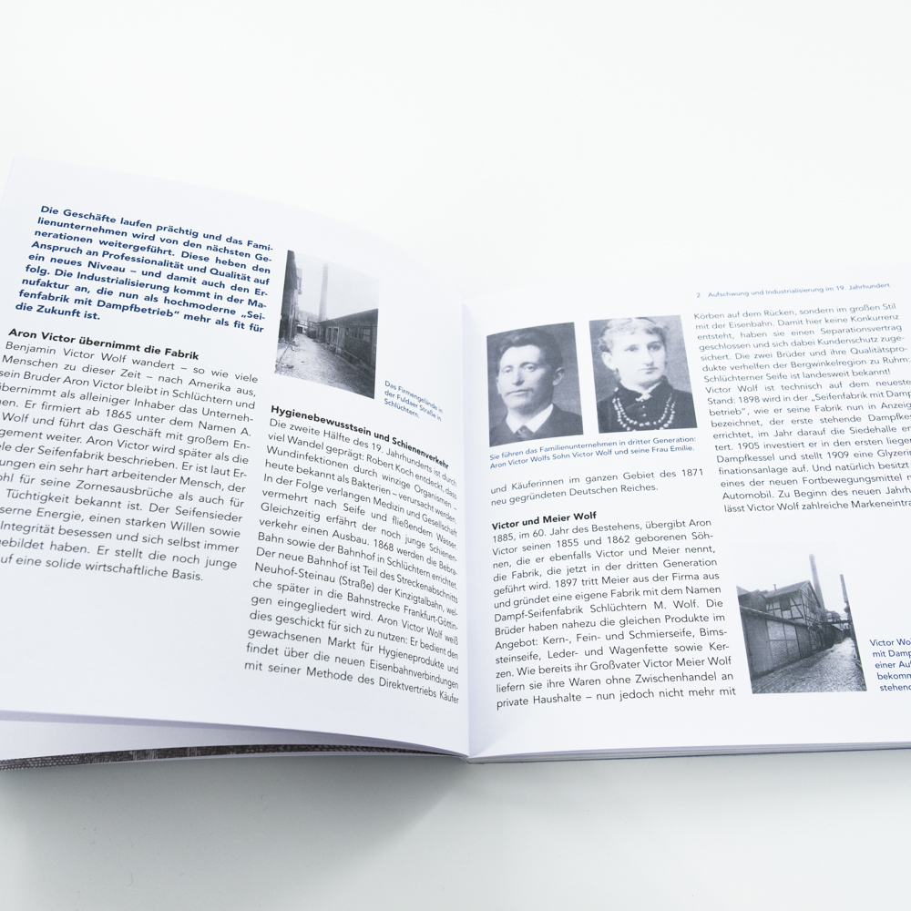 Im Auftrag des Unternehmens entstand dieses schöne Büchlein über die Geschichte der Dreiturm GmbH im hessischen Steinau. Recherchiert und geschrieben wurde es von Anton Till und Nadine Beck von Neumann & Kamp Historische Projekte. Redaktion und Gestaltung übernahm die Zwey Verlagsgesellschaft.
